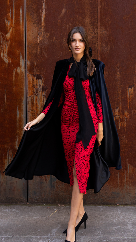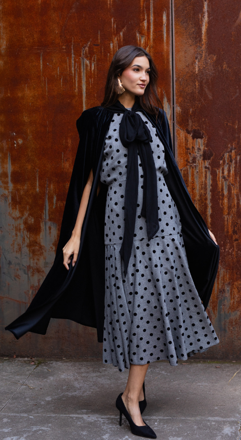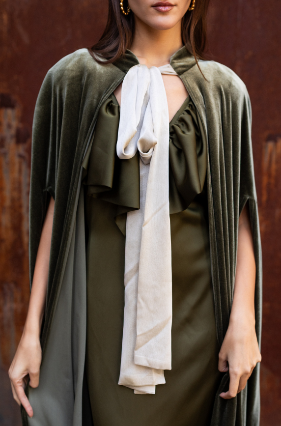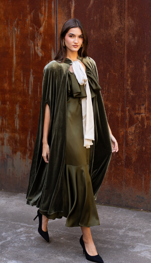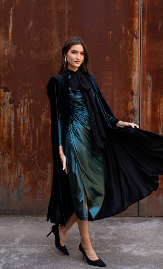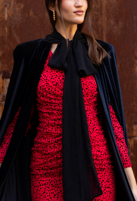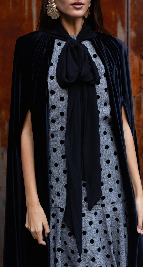 Esta elegante capa de terciopelo es la prenda perfecta para añadir un toque de lujo y sofisticación a tu look. Confeccionada en suave terciopelo. La lazada en la parte frontal ofrecen un detalle ideal.