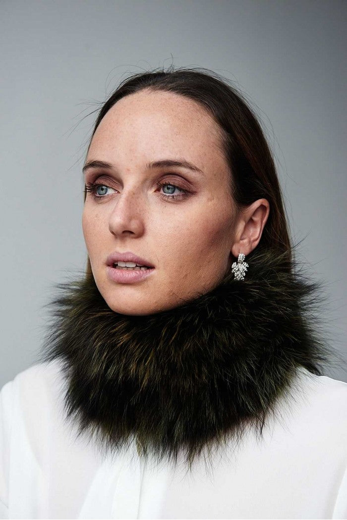 Cuello de auténtico pelo de zorro tejido, con textura suave y volumen natural.