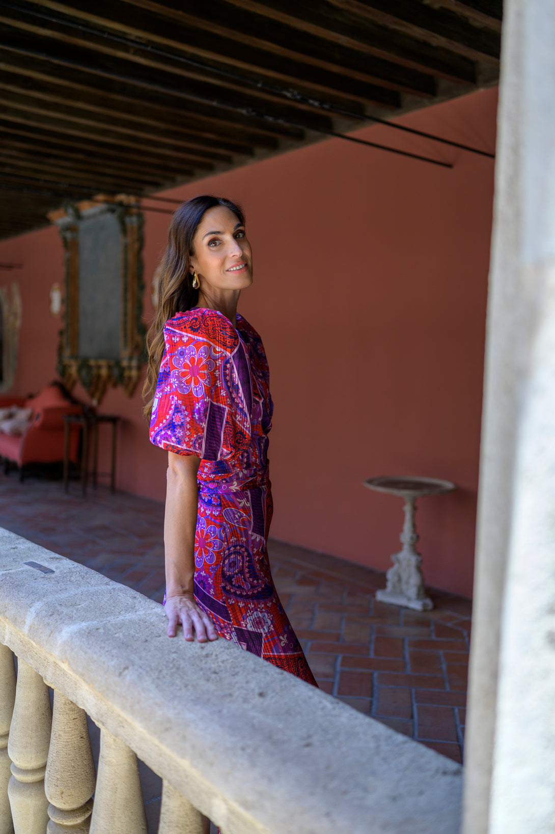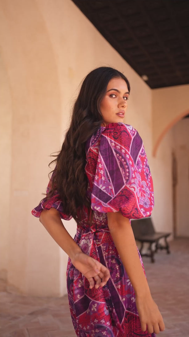 Precioso conjunto de dos piezas de falda y top en gasa estampada.