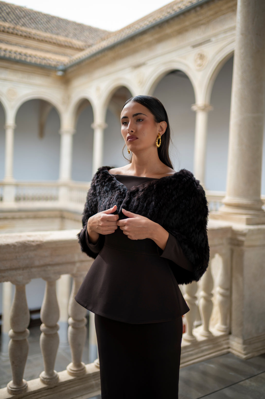 Añade un toque de elegancia y distinción a tu look con esta estola de piel. Su diseño suave y envolvente aporta calidez sin perder estilo, ideal para eventos de noche, ceremonias o celebraciones especiales.