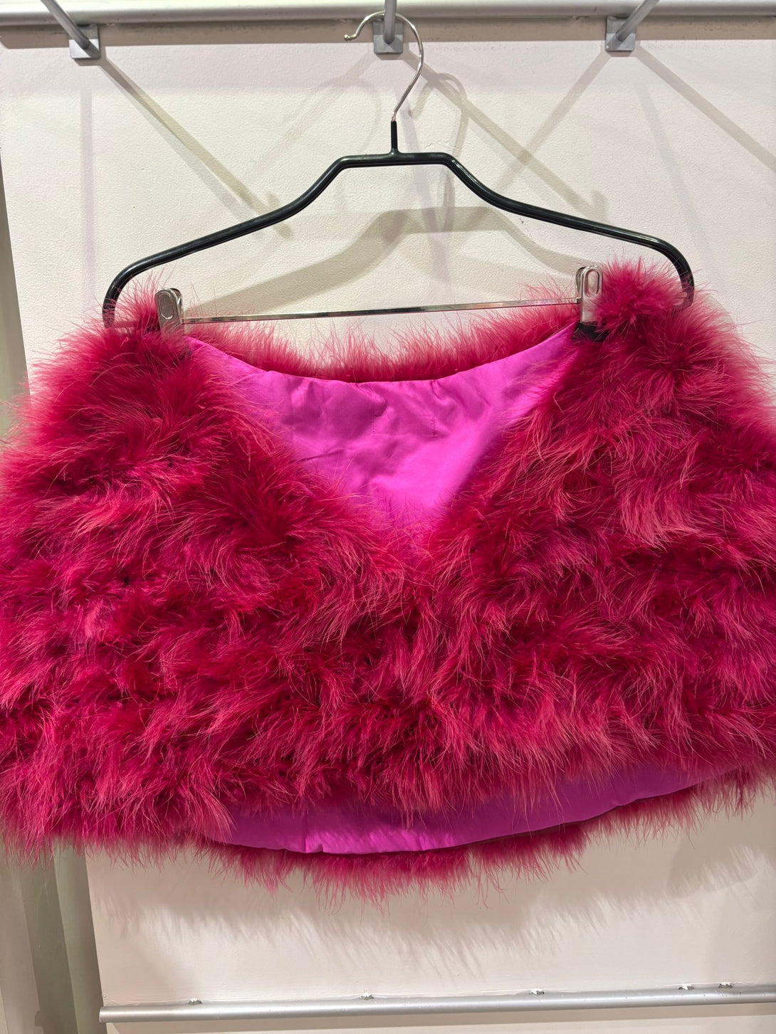 Estola de pluma natural de tipo capa con doble cierre en forma de enganche.