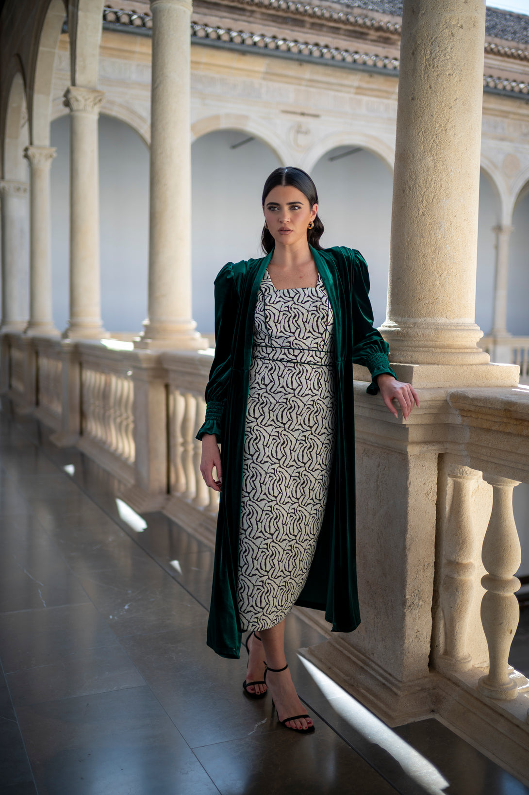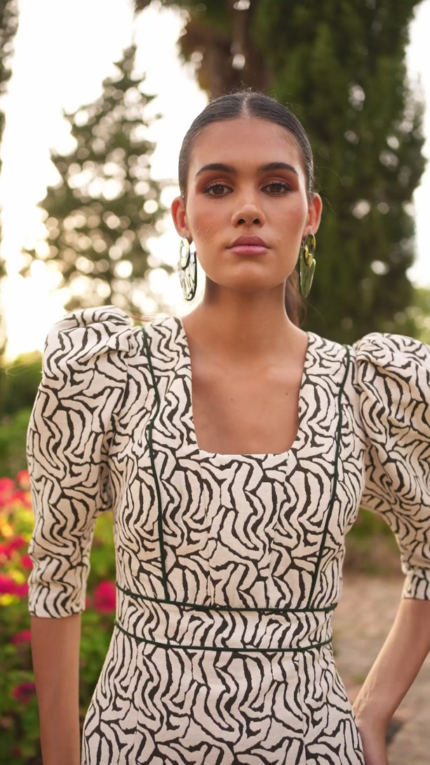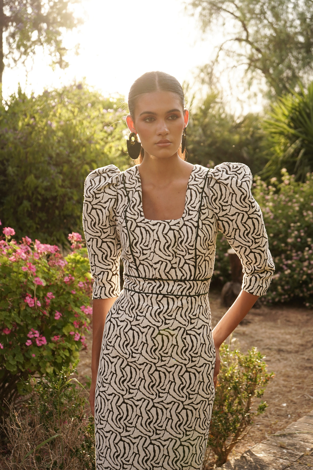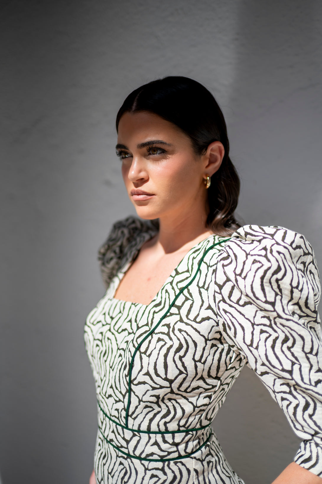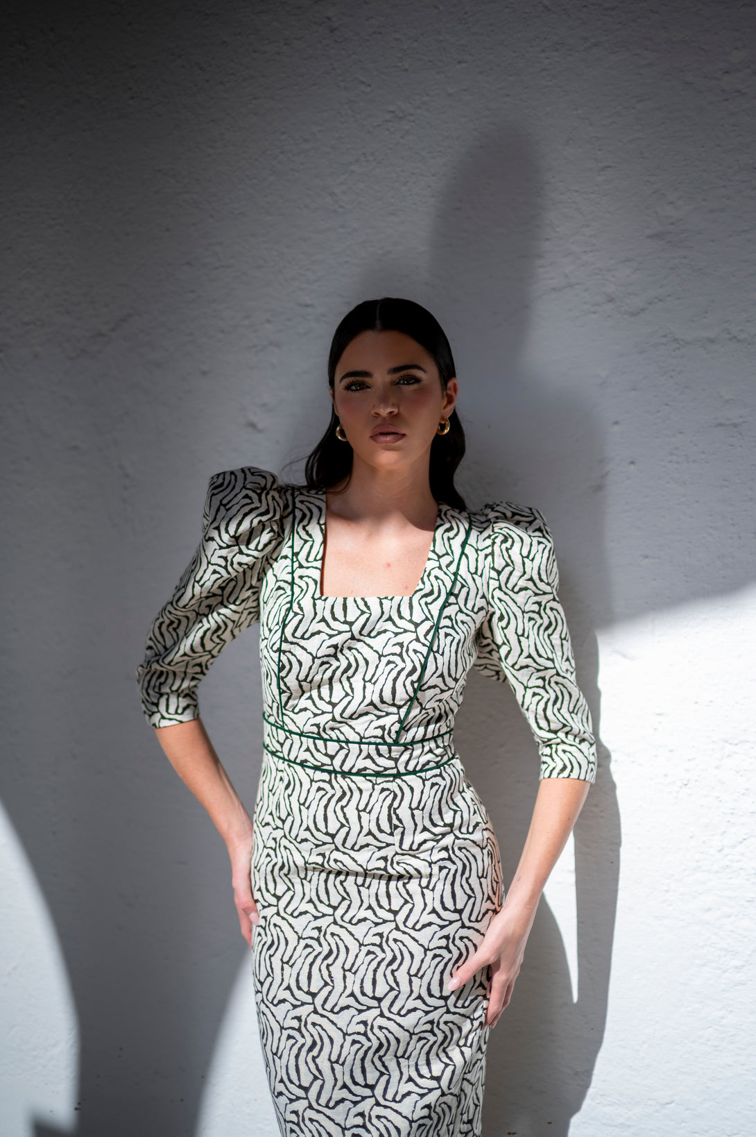 Vestido con escote cuadrado y manga abullonada, que combina un aire romántico con un toque moderno. Ideal para lucir femenina y elegante en cualquier ocasión.